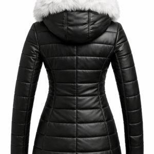Robin Women’s Black Real Leather Puffer Jacket with Premium Insulation